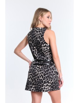 ABITO MACCA CON DOPPIA CINTURA IN VITA E ZIP NEL CENTRO DIETRO. STAMPA ANIMALIER