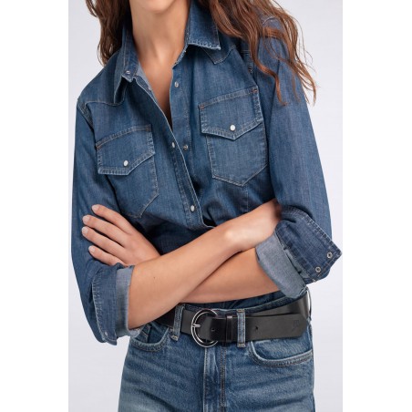 CAMICIA GAS MODELLO LINDY SLIM FIT IN DENIM STRETCH VALORIZZA LA SILHOUETTE SENZA RINUNCIARE AL COMFORT. IL LAVAGGIO A POMICE MEDIO DONA SFUMATURE AUTENTICHE AL BLU INDACO , MENTRE I BOTTONI A PRESSIONE AGGIUNGONO UN TOCCO GRINTOSO E PRATICO .PERFETTA DA INDOSSARE CON JEANS PER UN LOOK DENIM O ABBINATA A PANTALONI DAL TAGLIO SARTORIALE PER UN CONTRASTO SOFISTICATO E COOL.