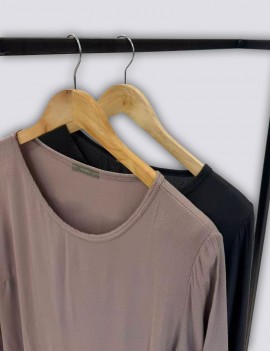 BLUSA VARIETY MODELLO TABA REALIZZATA IN 100% RYON COLORE MALVA DALLA MANO CALDA E CONFORTEVOLE .DAL FIT MORBIDO ,LA MANICA LUNGA E LO SCOLLO TONDO E AMPIO LO RENDONO UN CAPO PERFETTO DA INDOSSARE DA SOLO O SOTTO UN BLAZER O UN CARDIGAN PER UN LAYERING SOFISTICATO.
