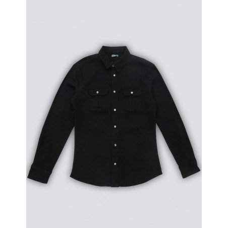 CAMICIA MODELLO FOSTER DI ORIGINS&CO, A MANICA LUNGA DAL FIT SLIM, REALIZZATA IN COTONE ELASTICIZZATO, TINTO CAPO CON LAVAGGIO ENZIMATICO COLORE NERO . UN EVERGREEN DEL GUARDAROBA MASCHILE CON UN LOOK MILITARY