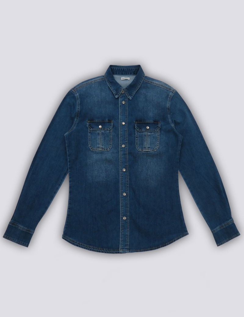 CAMICIA MODELLO FOSTER ,UNA RIVISITAZIONE IN CHIAVE CONTEMPORANEA DELL ICONICA CAMICIA IN DENIM CARATTERIZZATA DA UN LOOK MILITARE DATO DALLE TASCHE CARGO E DAL LAVAGGIO USED . PERFETTA PER COMPORRE OUTFIT MULTISTRATO O TOTAL DENIM, È UN KEY-ITEM DA INDOSSARE IN OGNI OCCASIONE