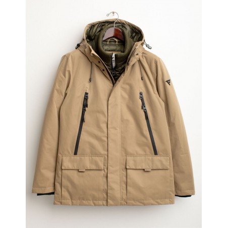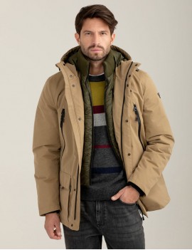 PARKA FRED MELLO FUNZIONALE E MODERNO, PROGETTATO PER OFFRIRE PROTEZIONE E COMFORT NELLE GIORNATE FREDDE. REALIZZATO IN TESSUTO MISTO CON INSERTI IN NYLON DUE TONI, PRESENTA UN DAVANTINO STACCABILE CHE NE AUMENTA LA VERSATILITÀ. COMPLETANO IL DESIGN I DETTAGLI LOGATI, LE TASCHE MULTIFUNZIONALI E LE FINITURE CURATE.