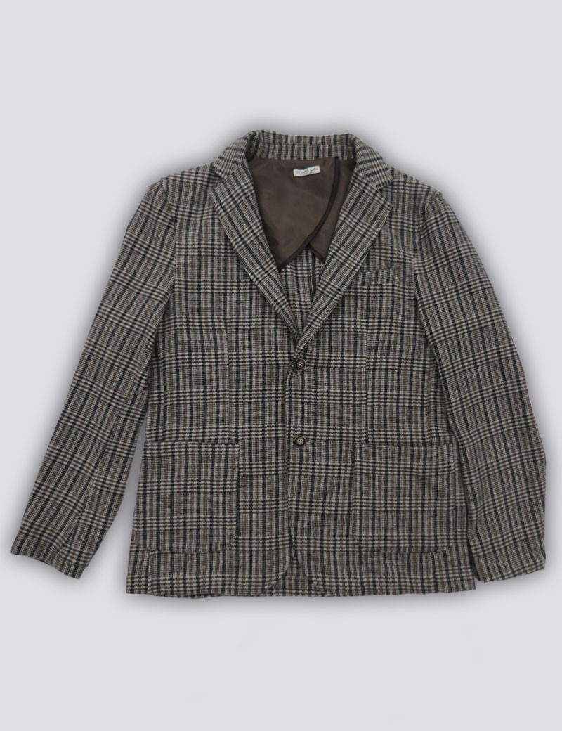 BLAZER ORIGINS&CO MODELLO REVENS REALIZZATO IN MORBIDO PRINCIPE DI GALLES SUI TONI DELLA TERRA , CHIUSURA MONOPETTO , CLASSICO REVER E DUE TASCHE PATCH APPLICATE SUL DAVANTI , TASCHINO A FILETTO CON FOULARD ,CUCITURE CON NASTRO IN RASO E MANTELLINA RIFINISCONO IN CAPO . UN BLAZER ADATTO A MOLTE OCCASIONI.