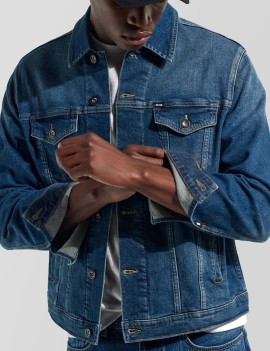 GIACCA JEANS UOMO MODELLO OKLAHOMA, SLIM FIT IN DENIM BLUE INDACO COMFORT 12.7 OZ 100% COTONE. IL DENIM COMFORT ACCOMPAGNA IL MOVIMENTO, MENTRE IL LAVAGGIO STONE WASH MEDIO VALORIZZA TEXTURE E CUCITURE, DANDO CARATTERE A UN GRANDE CLASSICO DEL GUARDAROBA MASCHILE.