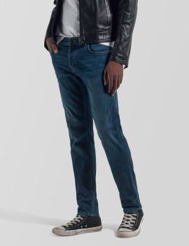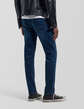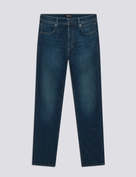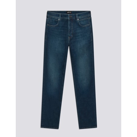 JEANS UOMO MODELLO ALEX, 5 TASCHE SLIM FIT IN DENIM BLUE INDIGO COMFORT 10.30 OZ. IL LAVAGGIO STONE WASH DARK È DEFINITO DA LEGGERE ABRASIONI LOCALIZZATE SU TASCHE E FONDO, CHE AGGIUNGONO PROFONDITÀ VISIVA AL DENIM. IL FIT SLIM ACCOMPAGNA LA GAMBA IN MODO NATURALE, RENDENDO IL CAPO ADATTO A LOOK ESSENZIALI DAL CARATTERE DECISO