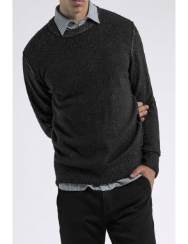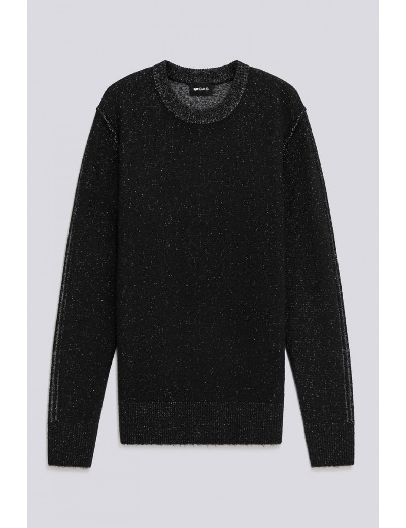 PULL GAS MODELLO AMARI GIROCOLLO REGULAR FIT IN MORBIDO FILATO WOOL BLEND FINEZZA 7 COLORE NERO , CARATTERIZZATA DA UN ORIGINALE EFFETTO BICOLORE VANISÉ TRA ESTERNO E INTERNO E DA CUCITURE A VISTA SU GIRO MANICA. IL DETTAGLIO LOGO APPLICATO SUL FONDO AGGIUNGE UN TOCCO AUTENTICO A UN CAPO ESSENZIALE MA DISTINTIVO, PERFETTO DA ABBINARE A DENIM O CHINO PER UN LOOK CASUAL MA RICERCATO.