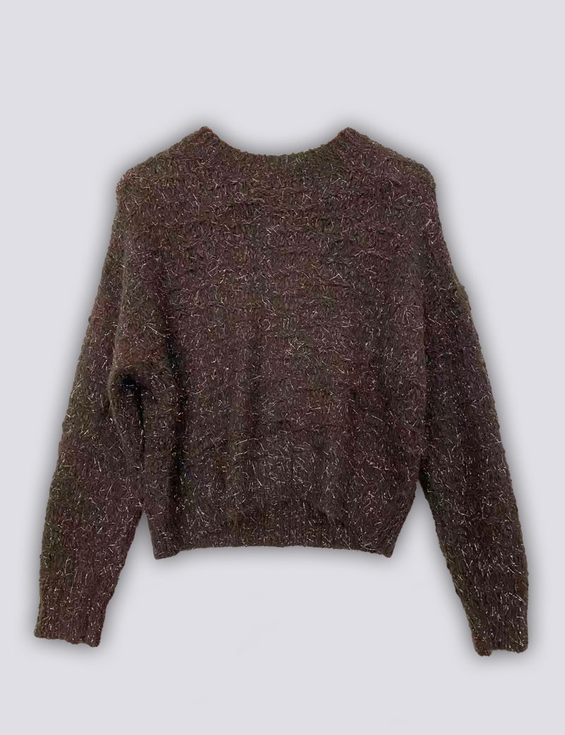 PULL 2903 AVVOLGENTE E DAL LOOK MODERNO, QUESTO MAGLIONE IN FILATO SOFFICE MISTO COTONE ACRILICO COLOR CAFFE' È PERFETTO PER AFFRONTARE LA STAGIONE FREDDA CON STILE. LA SUA TEXTURE PELOSA E LA LAVORAZIONE A MAGLIA LARGA DONANO UN EFFETTO CALDO E MORBIDO AL TATTO, IDEALE PER CREARE OUTFIT CASUAL E RILASSATI. IL DESIGN CON SPALLE SCESE, BORDI A COSTINE E VESTIBILITÀ COMODA ASSICURA COMFORT E LIBERTÀ DI MOVIMENTO.