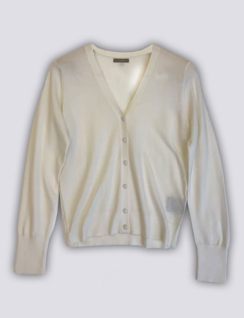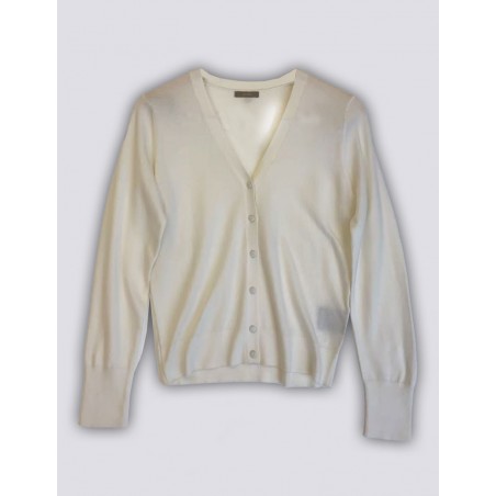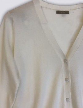 CARDIGAN VARIETY MODELLO VERIN REALIZZATO IN MAGLIA DI MISTO VISCOSA FINEZZA 12 COLORE LATTE CON SCOLLO A V E BOTTONCINI FODERATI . UN CAPO ESSENZIALE PER TUTTI I GIORNI , PERFETTO PER CHI CERCA COMFORT. IL DESIGN E I DETTAGLI ESALTANO LA SILHOUETTE.