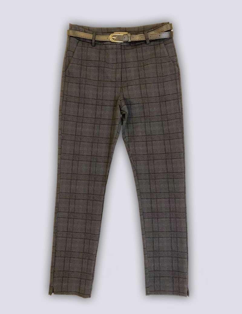 PANTALONE VARIETY MODELLO MADIA REALIZZATO IN PUNTO MILANO DI MISTO VISCOSA STRETCH MOTIVO QUADRO NEI TONI DEL GRIGIO , DALLA VESTIBILITA SLIM CON SPACCHETTO SUL FONDO , TASCHE SAGOMATE SUL FIANCO E TASCHE CON PATTA POSTERIORI , UN PANTALONE PERFETTO DA ABBINARE A UN PULL O UNA BLUSA O MATCHING AL BLAZER AMIRA PER UNO STILE UNICO