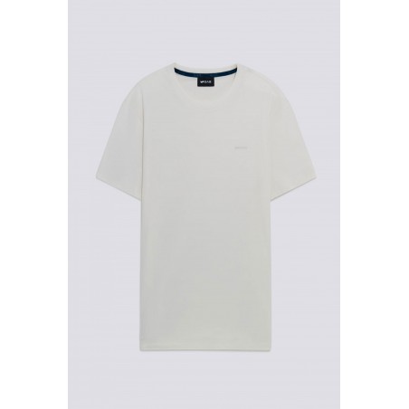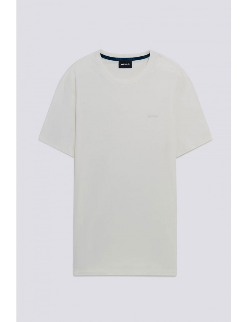 T-SHIRT GAS MODELLO A MANICA CORTA DAL FIT SLIM , REALIZZATA IN JERSEY STRETCH COLORE BIANCO. LA STAMPA LOGO SPESSORATA E IL PARASUDORE LOGATO FIRMANO UNO STILE ESSENZIALE MA COOL